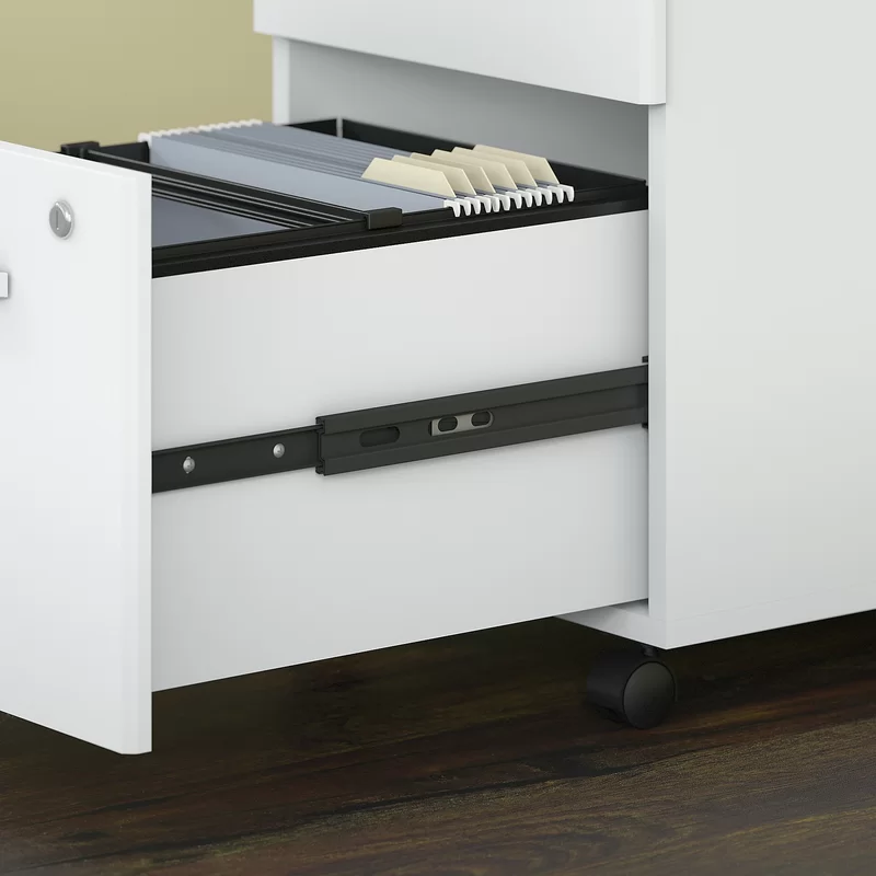 • Features 2-3 drawers for stationery, personal items, and file storage, with one drawer often designed for hanging files.