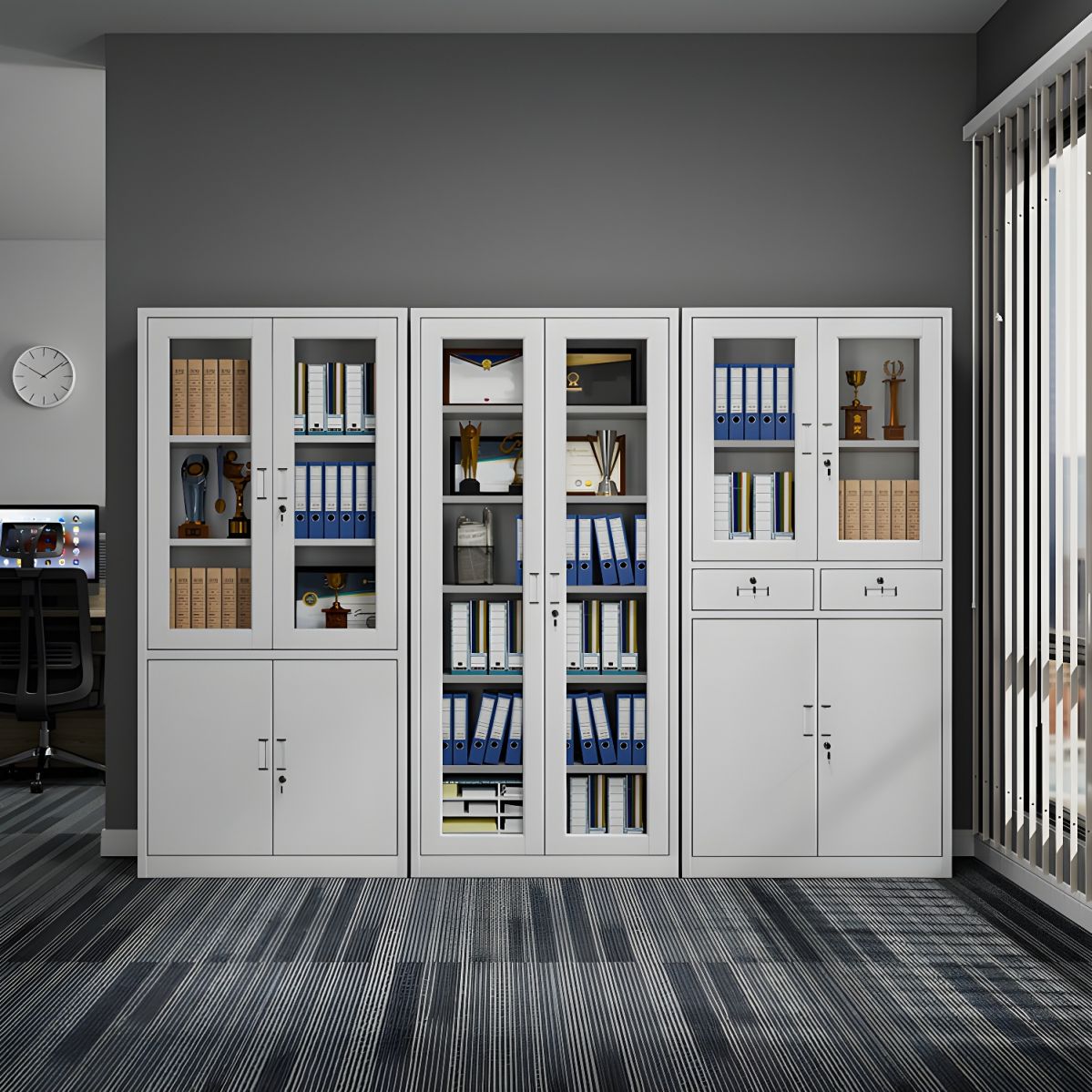 A metallic filing cabinet often has a sleek, minimalist design, with finishes like powder-coated steel for a modern, professional appearance. The aesthetic fits well in corporate offices, home offices, or commercial spaces.
