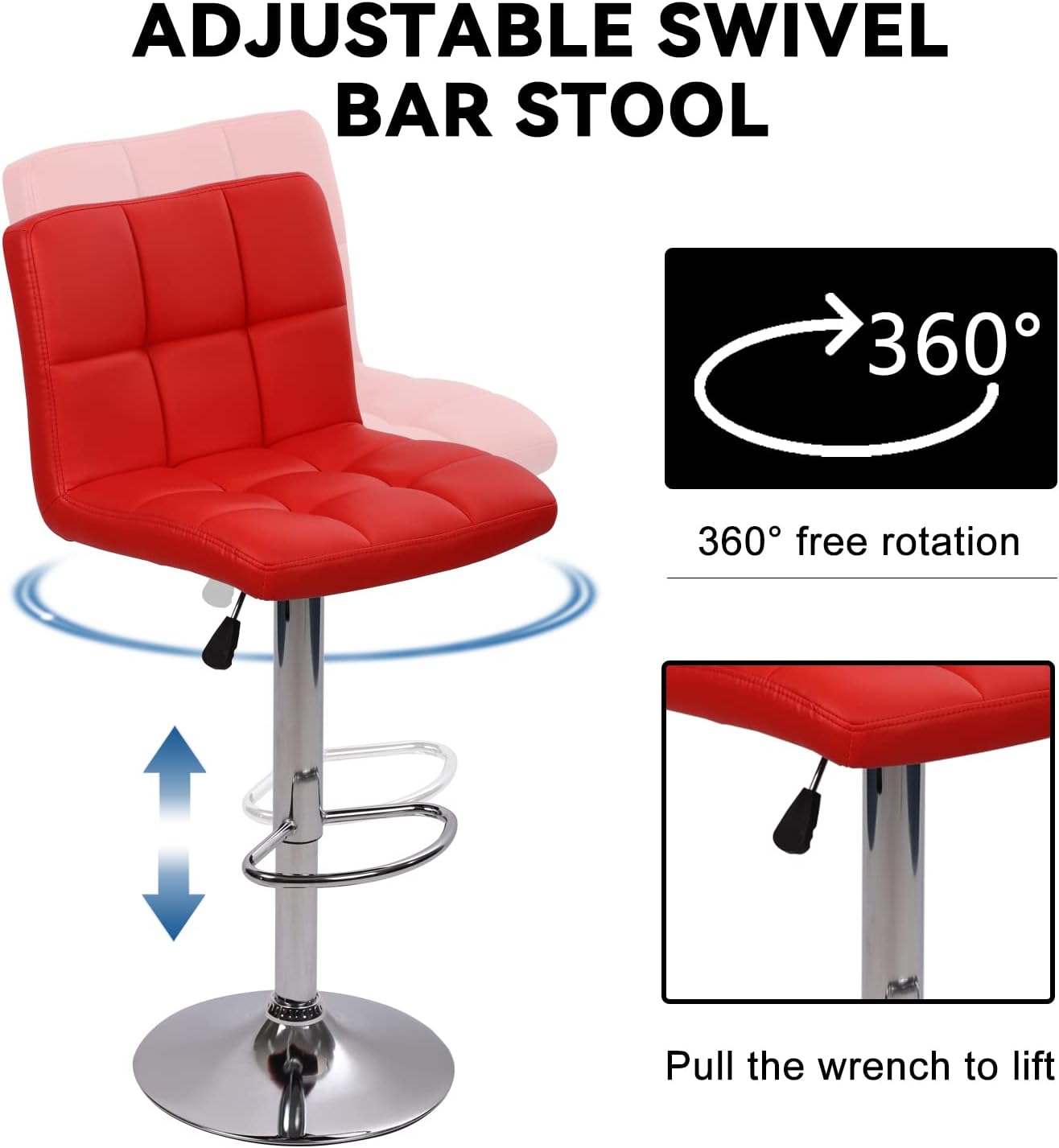 Some models come with gas lift mechanisms that allow you to adjust the seat height, making it ideal for different counter or bar heights.