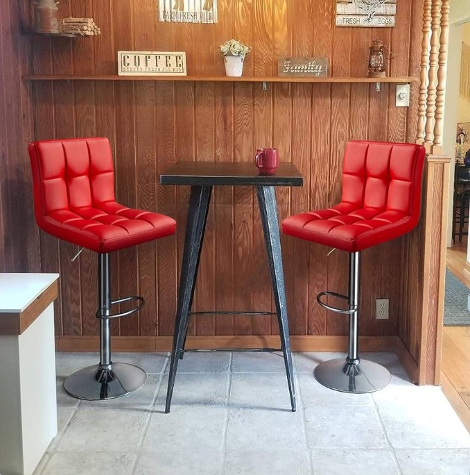 Many red swivel barstools feature a padded seat with high-density foam or cushioning for added comfort, perfect for extended sitting during meals or social gatherings.